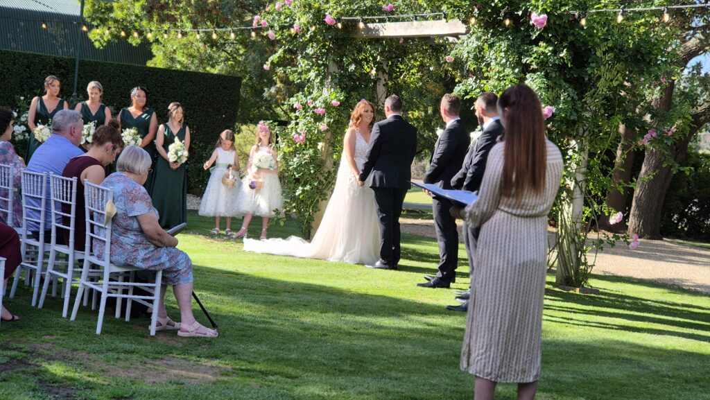 Jess & Ryan had an amazing day at Flowerdale Estate, with perfect weather for an outdoor afternoon ceremony in the lovely gardens, followed by an exciting and fun filled evening in the pavillion. Flowedale put on an amazing buffet dinner and kept the cold drinks flowing from their rustic outdoor bar.